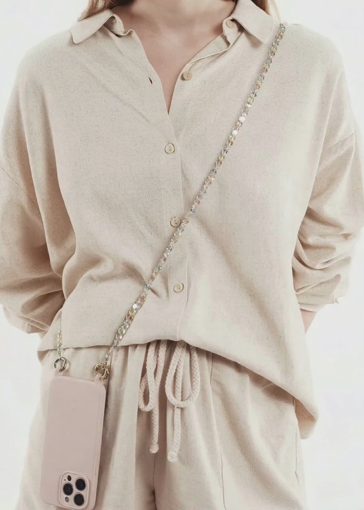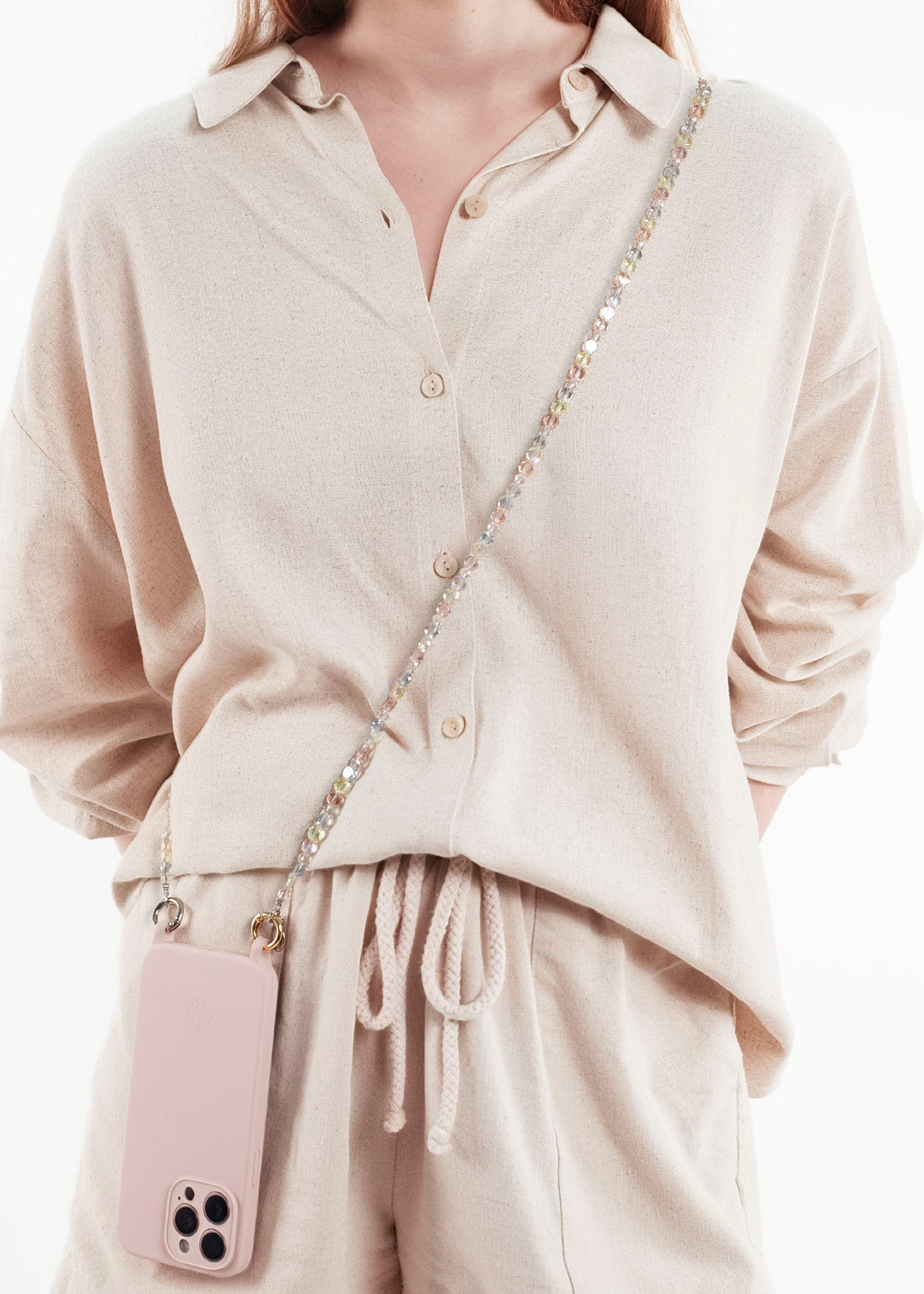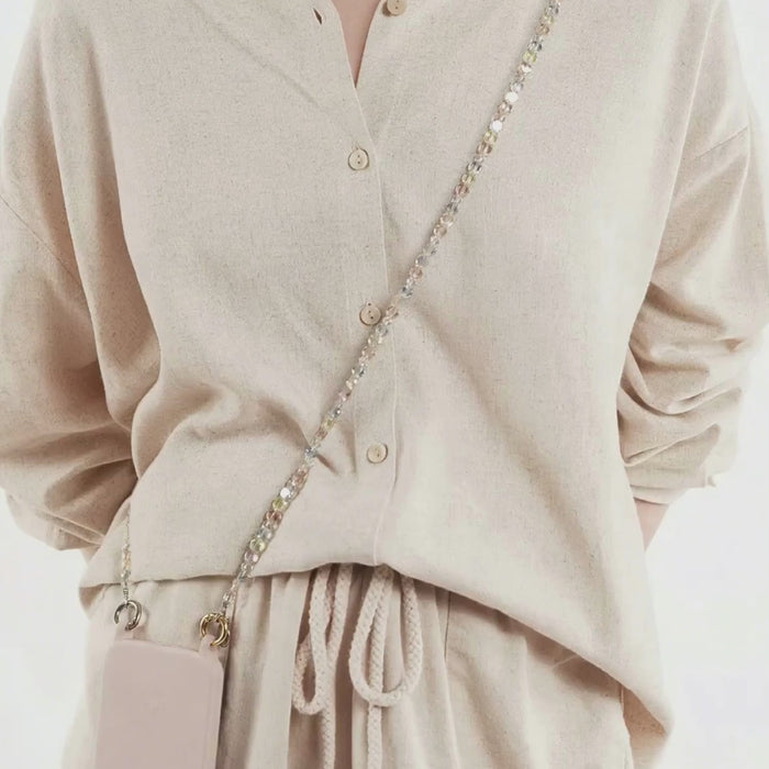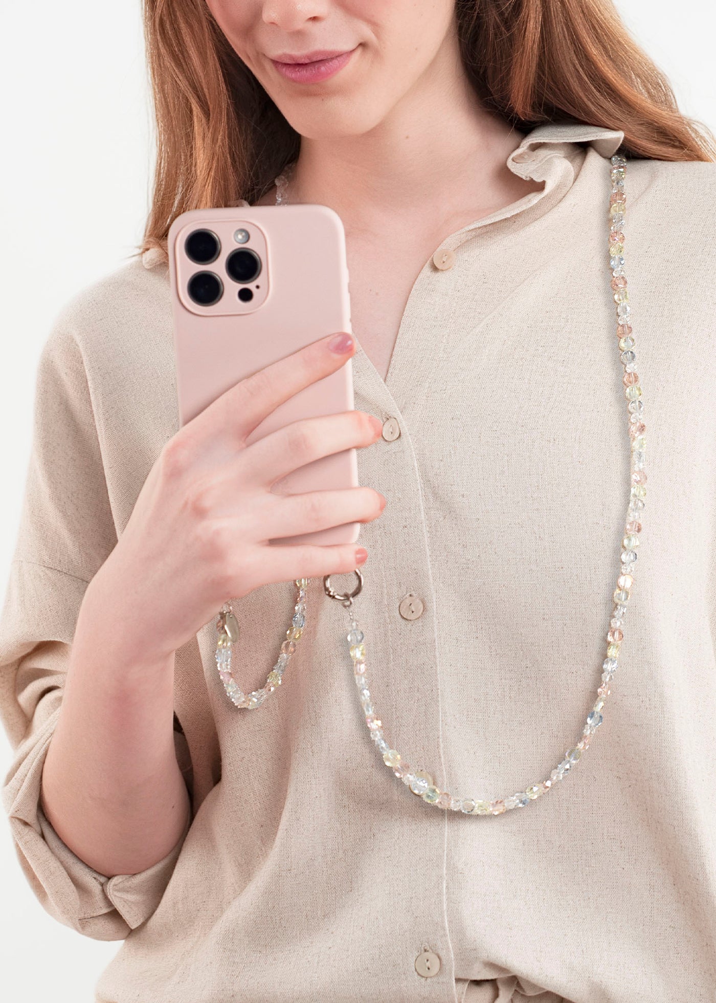 A Alça Universal Cristal Aurora Aya Pitaya é uma alça para celular de cristais de vidrilho, criada para quem busca um acessório elegante, versátil e com brilho sutil. Reflete a luz de forma suave, trazendo textura e luminosidade ao look sem perder a estética minimalista.