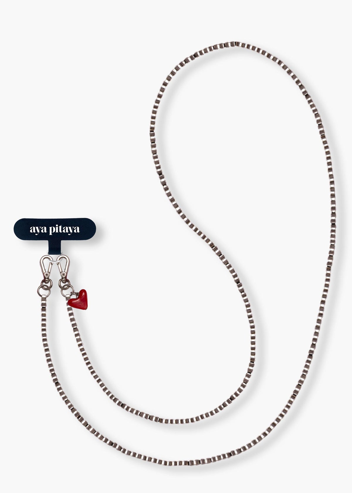 A Alça Corrente Prata Heavy Love da Aya Pitaya é perfeita para quem busca um acessório prático e seguro para proteger seu celular, são super fáceis de acoplar na sua case com a PadTag que acompanha o produto, ou em cases adaptadas para alças Aya Pitaya, com o mosquete clássico de nossos acessórios. Além disso, são ajustáveis, garantindo conforto, segurança e praticidade.