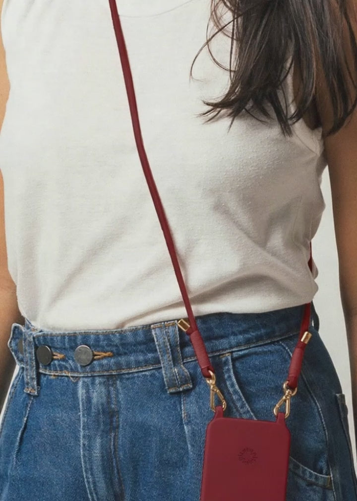 Produzida com poliéster reciclado e fios de algodão com tingimento natural, a alça é 100% reciclável, ajustável e confortável — perfeita para carregar seu celular com segurança e liberdade.
