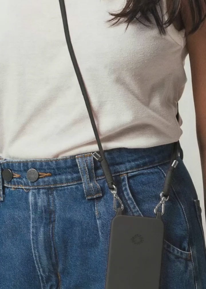 Produzida com poliéster reciclado e fios de algodão com tingimento natural, a alça é 100% reciclável, ajustável e confortável — perfeita para carregar seu celular com segurança e liberdade.