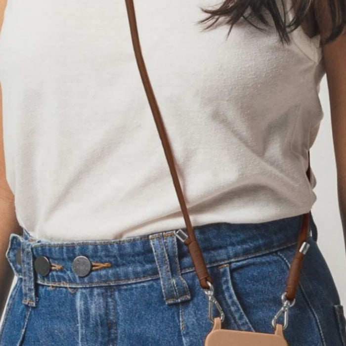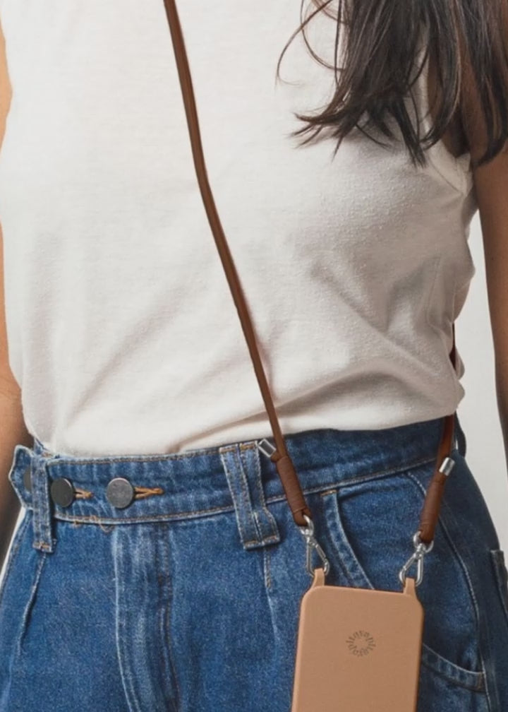 Produzida com poliéster reciclado e fios de algodão com tingimento natural, a alça é 100% reciclável, ajustável e confortável — perfeita para carregar seu celular com segurança e liberdade.