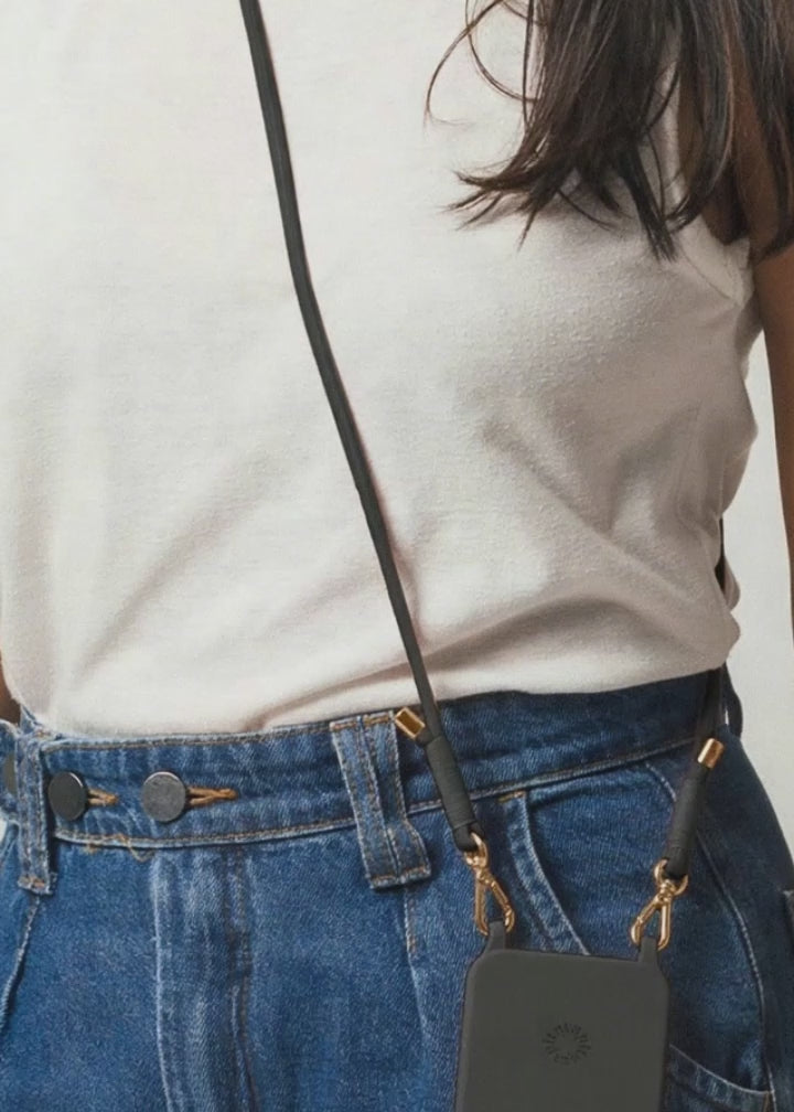 Produzida com poliéster reciclado e fios de algodão com tingimento natural, a alça é 100% reciclável, ajustável e confortável — perfeita para carregar seu celular com segurança e liberdade.
